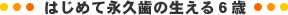 | 乳歯は、永久歯が健全で正しい歯ならびで生えるためのリード役です。 生えかわるからと、安心してはいけません。むし歯や歯ならびには、ふだんから注意をします。 |