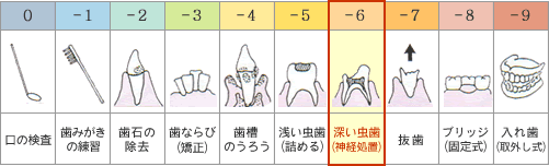 ・ さらに進行し、歯髄が死んでしまい歯根の先まで病気が及んだ場合。